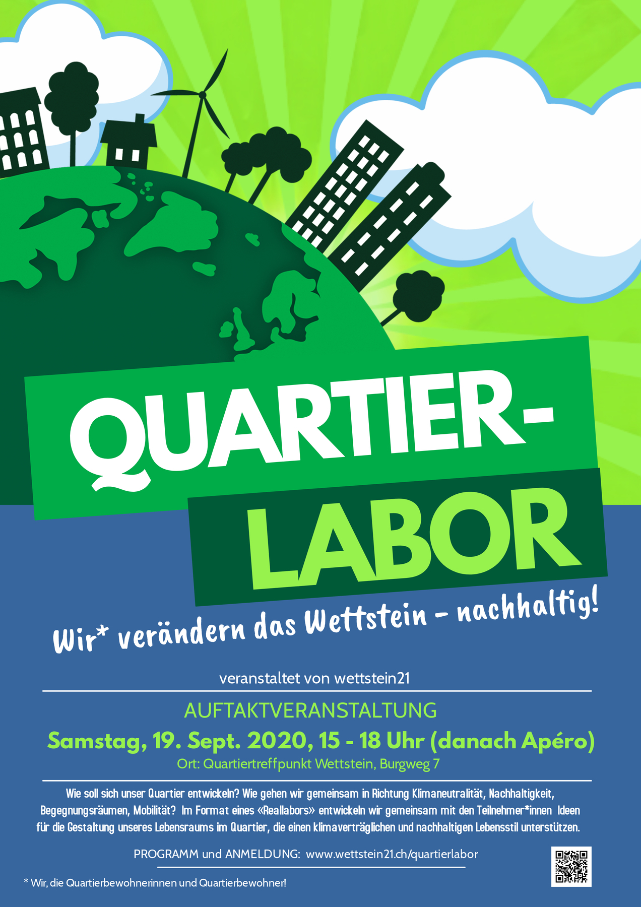 Im Format eines «Reallabors» entwickeln wir mit Quartierbewohnerinnen und Quartierbewohnern Ideen für die Gestaltung unseres Lebensraums in unserem Quartier, die einen klimaverträglichen und nachhaltigen Lebensstil unterstützen. Ziel ist eine nachhaltigere Quartier- und Stadtentwicklung.